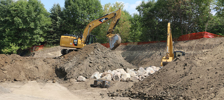 Create a solid foundation for your project by choosing our local and experienced team for excavating and grading services in the Twin Cities metro area. Bituminous Roadways, Inc. specializes in site prep, bank erosion and stabilization, creek and pond sediment removal, rip rap, and other commercial grading and excavation services. Our highly qualified professionals utilize the latest site grading equipment and precise methods to meet your requirements.